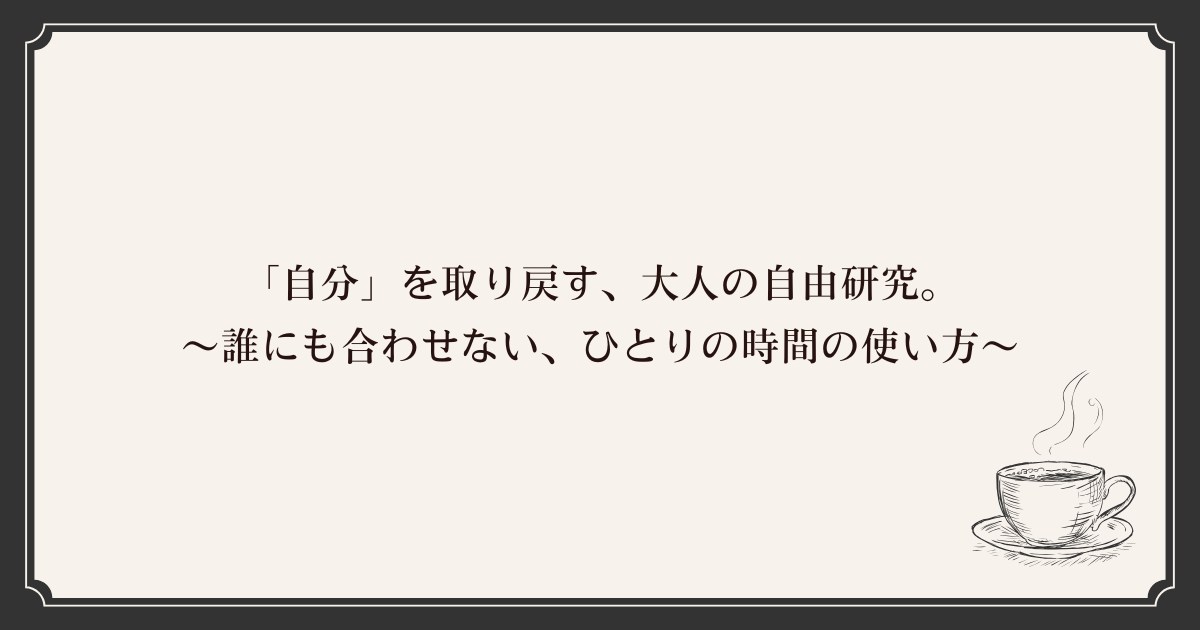 このサイトでは、「30代・40代男性のひとり時間の楽しみ方」を、